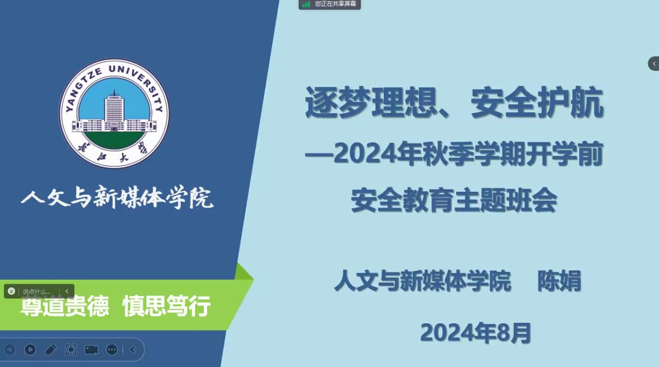 (通讯员 胡雅静)为保障员工安全有序返校,增强员工安全防范意识,引导员工尽快适应新学期生活,明确新学期目标和要求。8月22日,我院召开2024年秋季学期前安全教育主题班会,全体研究生参加会议,会议由研究生辅导员陈娟老师主持。