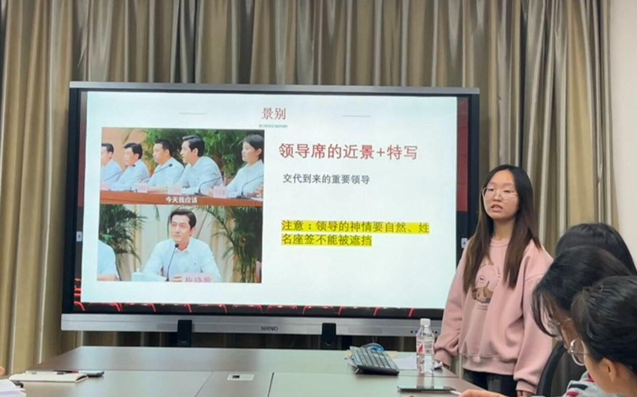 (通讯员 刘素心)10月21日晚7:00,公司于文科楼701室举办会议拍摄技巧培训。公司辅导员田华蓉老师、新闻社社长成筝、员工会主席团成员宋屹晗及院宣传部全体成员参与此次活动,本次活动由宋屹晗主持。