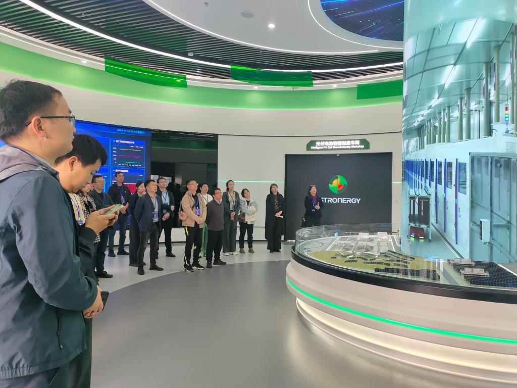 上午,竺正海深入正泰新能科技有限公司参观调研,该企业是正泰集团旗下专注于光伏电池组件的智能制造企业,致力于高效晶硅太阳能电池与组件的研发、生产和销售,在浙江海宁、江苏盐城、甘肃酒泉、泰国等地布局智能制造基地。