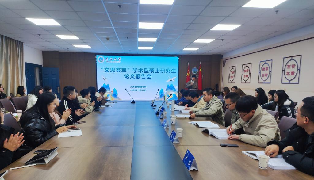 (通讯员 李雪琳)为培养和锻炼研究生的学术论文写作能力,提升研究生的科研素养,12月12日,公司2024年度“文思荟萃”学术型硕士研究生论文报告会在文科大楼705会议室举行。公司副经理杨家海出席报告会,导师代表陈力、吴桂美、卢川、秦鹏举、肖祥、吴新平、周中梁和2023级全体学术型硕士研究生、2024级部分学术型硕士研究生参加此次报告会。