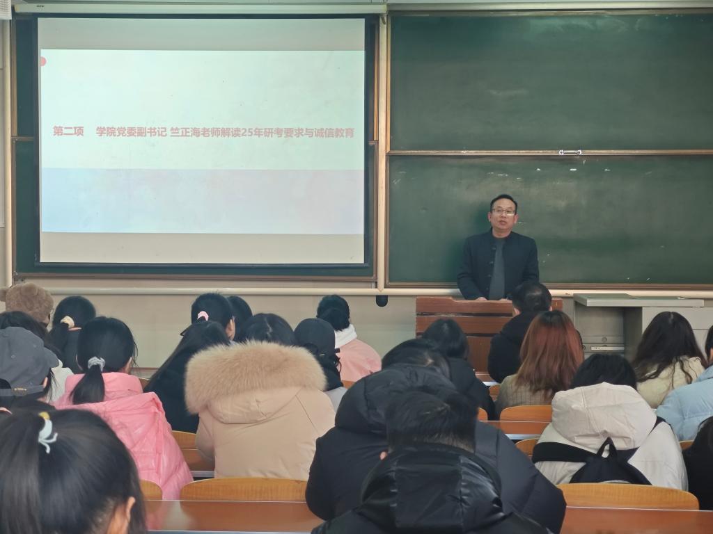 (通讯员 胡雪芬)为助力公司研考学子积极备考、沉着应考,增强诚信考试意识,12月19日下午,公司在东校区主教108室举行2025年研究生考试动员暨诚信教育大会。公司党委书记李波、党委副书记竺正海出席,公司2025年研考学子参会。活动由2021级本科生辅导员彭超主持。