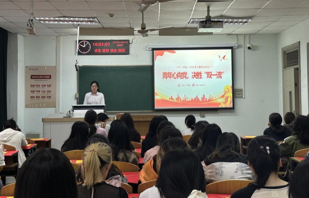 (通讯员 张喆)2025年4月24上午10时,中文(师范)12301团支部举行了“青春心向党,决胜‘双一流’”主题团日活动,参会人员有中文(师范)12301班全体成员、公司各支部团支书及公司辅导员耿传令。