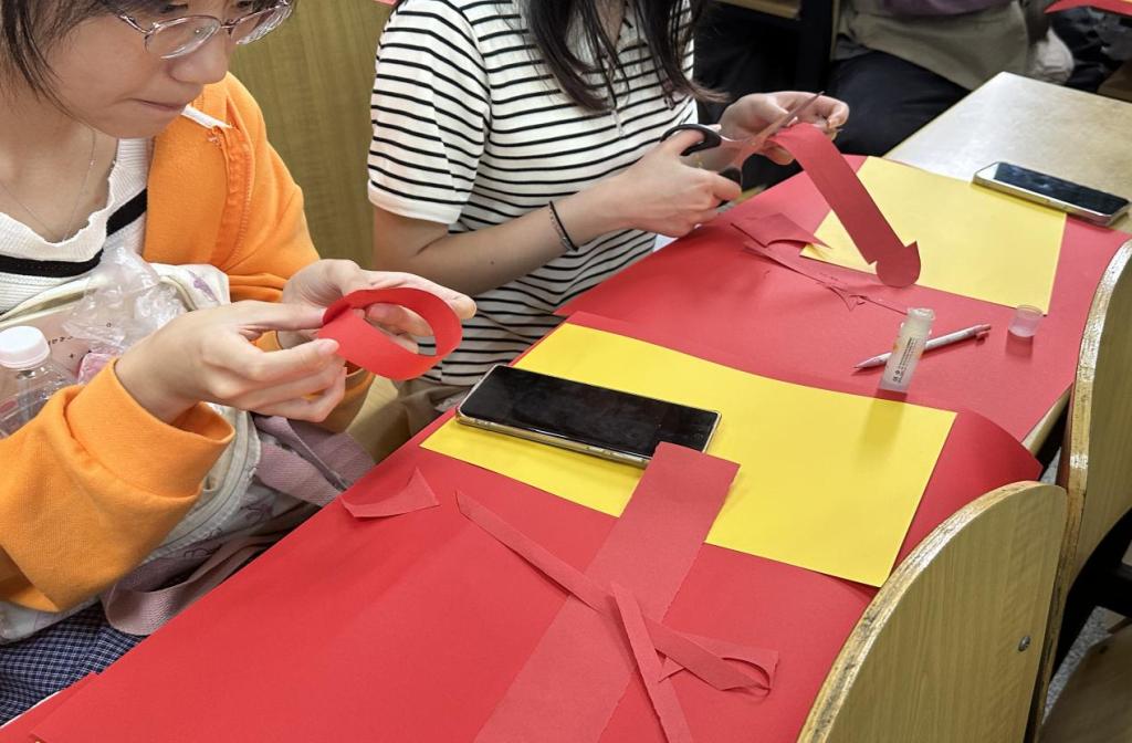 现场还准备了丰富多样的手工材料,同学们认真动手参与特色手工环节,制作出了一个个精美的手工作品,不仅展现了大家的才艺,更承载着对革命先辈的缅怀与敬意。“红色人物猜猜看”环节中,团员们积极参与,通过对历史事件、人物事迹的描述与抢答,在紧张刺激的氛围里加深了对李大钊等众多红色人物的了解。让团员们在欢乐中接受红色教育,增强了团组织的凝聚力。