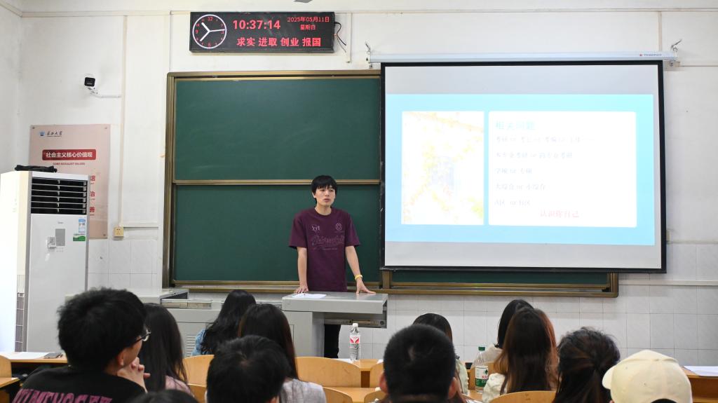 仪式后,由考取华中师范大学2025年硕士研究生的中师12103 班高攀达同学、考取天津大学2025年硕士研究生的历史12102 班杨平同学,结合自身经历为学员带来大学学习与升学指导讲座。他们介绍了大学的阶段性学习、目标的动态调整与考研备考指南等,并现场与同学们互动研讨,耐心细致答疑解惑。