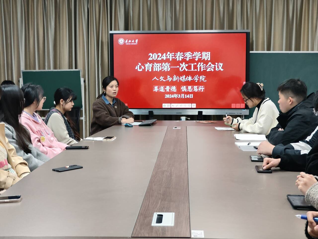 为了进一步提升心理健康教育工作服务水平,增强心理骨干队伍的专业素质。3月14日晚,田华蓉老师在文科楼705会议室主持召开2024年春季学期心育部第一次工作会议,此次会议聚焦本学期即将开展的第十三届心理文化节。2021级,2022级心育委员及心育部全体成员参会。
