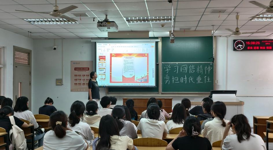 帮扶活动结束后,实践队队员和中文(师范)12305支部成员在教室集合,结合回信内容,共同开展此次志愿活动总结交流,中文(师范)12305支部陈建秀同学说:“看到孩子们的点滴进步与灿烂笑容,便觉得一切付出都意义非凡,未来我也会继续坚持,贡献青春力量。”