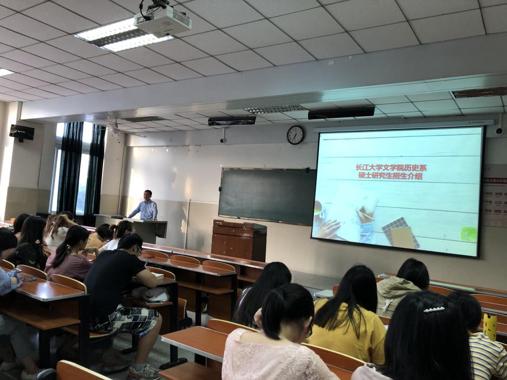 (通讯员 顺畅)5月22日晚7点,文公司历史系在12教301开展了一场2020年研究生招生与推免讲座宣传,历史系主任卢川老师发表主要讲话,班主任陈先蕾老师进行补充发言,16级历史系全体同学参加。