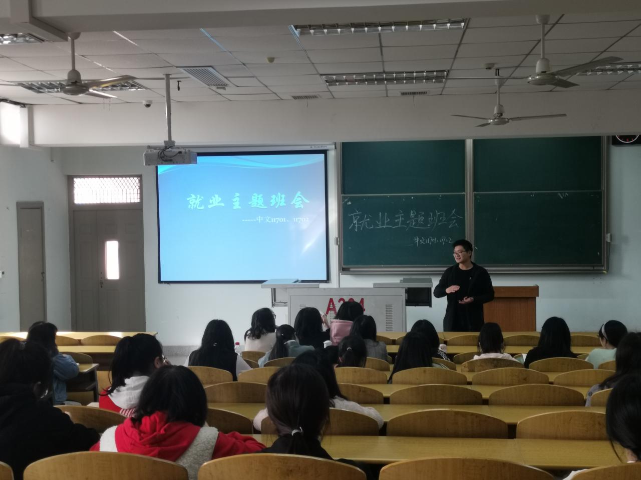 (员工记者 赵达)10月19日上午10时许,best365英国体育在线在13教A区304举行就业协议书发放暨就业信息说明会。龙厚雄老师、辅导员何宁,2017级全体在校同学参会。