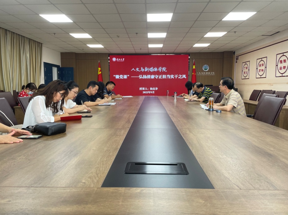 为进一步筑牢拒腐防变思想防线,擦亮廉洁自律思想底色,进一步落实“一下三民”实践活动要求。9月15日下午,公司党委书记杨克非在所联系的新闻历史行政联合教工党支部主题党日活动上讲授党风廉政教育专题党课。