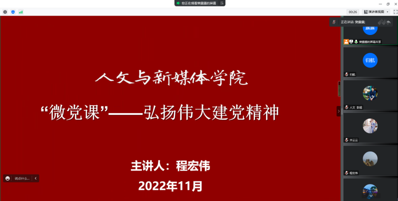 为积极响应党员干部“下基层察民情解民忧暖民心”实践活动,引导教师党员进一步了解党的历史,深化党的思想精神,11月23日,公司副经理程宏伟以“弘扬伟大建党精神”为主题,为新闻历史行政联合教工党支部作主题党课。