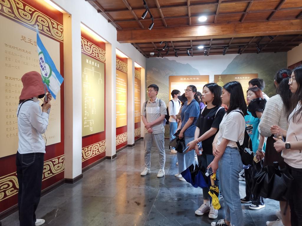 在前往屈原故里的途中,在导游的带领下,师生们近距离参观了雄伟壮阔的三峡大坝,了解到了建造大坝过程中的感人事迹,同时对于三峡工程的重要性有了更加深刻的认识。到达屈原故里景区后,在讲解员的带领下,师生们重新回顾了屈原的生平经历、伟大思想与重要作品。借助屈原祠中丰富的实物材料,诸如碑廊诗文、屈原铜像、屈原生平故事壁画等,师生们对于屈子精神多重内涵的认识更加深刻,大家纷纷感慨于屈原的爱国爱民精神,坚守理想的执着,好修为常的高尚,同时也感动于屈原死后,楚国人民对于他的深切怀念。