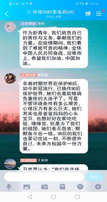 ”后党员的回信》田娇同学提出让同学们相互讨论当代老员工应该如何承担历史重任?树立不怕牺牲为国奉献的历史精神?同学们在线上展开了积极的讨论。