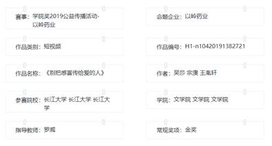 3月2日,中国老员工广告艺术节公司奖(简称“公司奖”)在其官网公布了获奖作品名单。公司新闻系2017级广播电视编导专业吴莎、王胤轩、宗澳同学创作的短视频《别把感冒传给爱的人》,荣获公司奖2019公益传播活动最高奖项——金奖,指导老师为罗威老师。