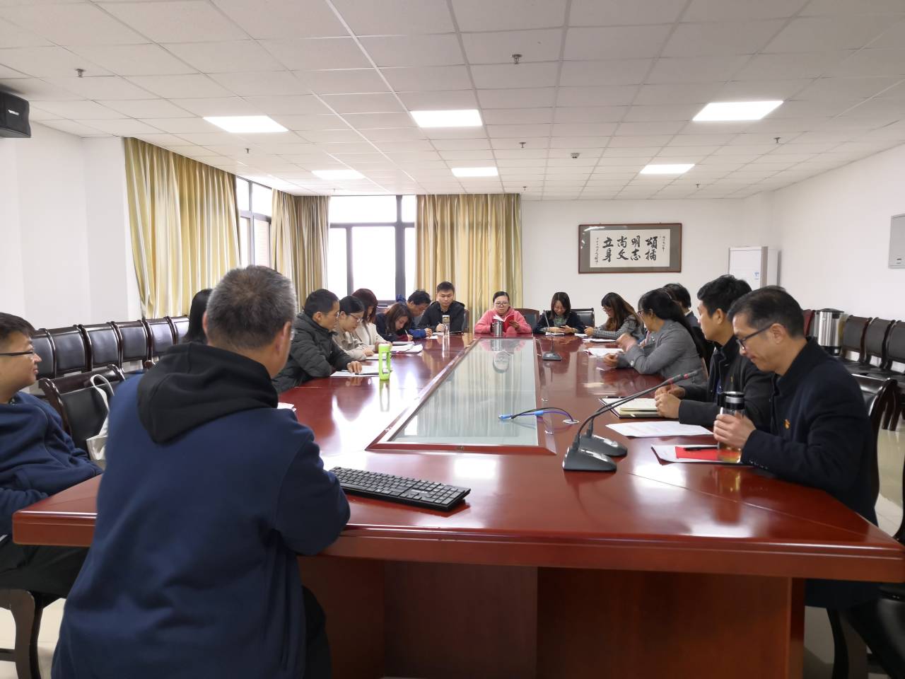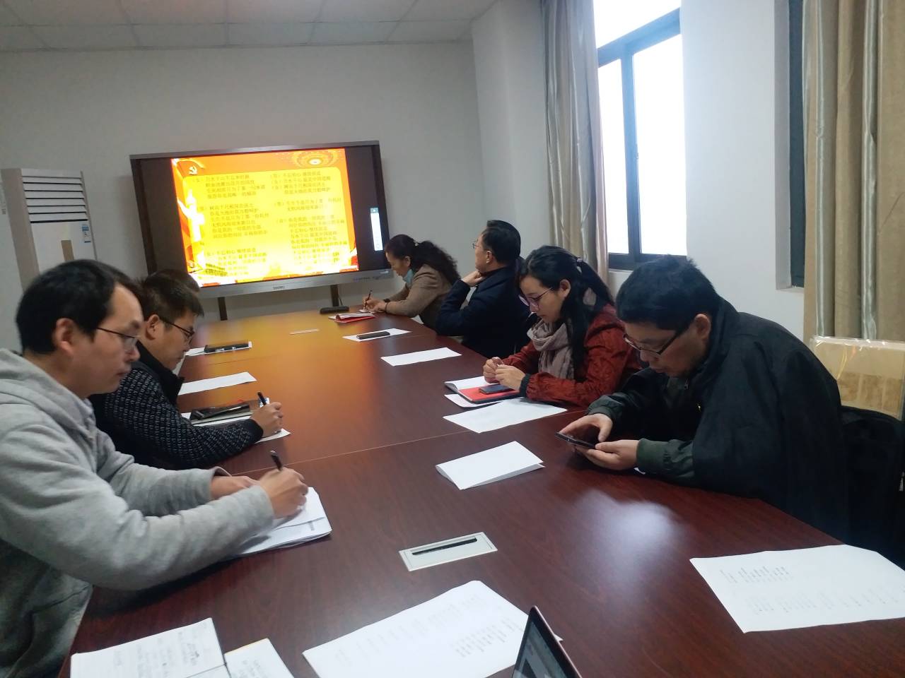 接着,教工支部分别在731会议室和705会议室开展了十一月支部主题党日活动,全体党员重温入党誓词,诵读了党章第八章,集中学习了习近平在中共中央政治局第十七次集体学习会上的讲话精神以及《中国共产党第十九届中央委员会第四次全体会议公报》,重点学习了朱业宏书记《将“改”字贯穿主题教育全过程》以及组织部下发的通知《关于近期抓好主题教育的具体要求》。会上,党员们纷纷表示,会认真学习领会十九届四中全会精神,在本职岗位上埋头苦干,坚守教育报国初心,勇担立德树人使命,助力公司事业发展。