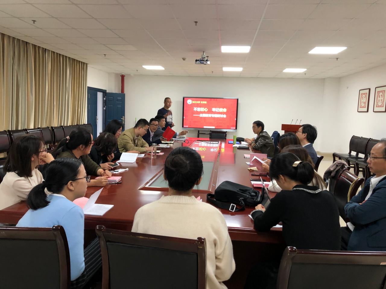 为深入贯彻“不忘初心、牢记使命”主题教育工作部署,进一步筑牢开展好主题教育的思想基础。10月31日下午2点,文公司在文科楼705会议室召开10月份教职工第二次支部主题党日活动。由文公司党委书记杨克非主持会议。