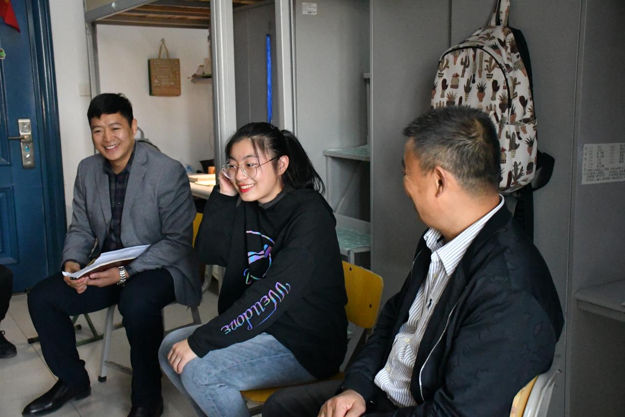 走访结束,周董事长与同学们一同来到里仁堂2栋205宿舍召开座谈会。周董事长询问了参加座谈的同学们的基本情况,了解员工的学习情况和兴趣爱好,嘱咐员工切实做好学业生涯规划,在不断的成长中实现人生价值。同时周董事长还勉励员工要立足于自身专业,在学好专业知识的同时注重全面发展,努力成为一个优秀的老员工。周董事长为公司陈梦玲同学的“三个一”结对联系人。在座谈会上,周董事长与陈梦玲同学进行了亲切的交流,了解她的思想动态和心理状况,并嘱咐她要多多加强身体锻炼,多与班级同学、老师沟通交流,希望她克服学习和生活上的困难,增强自信,提升能力,为今后求职升学的激烈竞争做出更充分的准备。