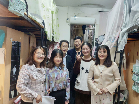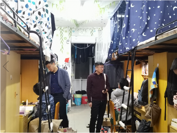 10月22日、23日晚,公司领导分别走访了东、西校各员工宿舍。在走访寝室的过程中,公司领导在了解同学们的状况之后,针对同学们目前存在的问题进行了沟通,他们表示会共同帮助同学们解决所面临的问题,同时希望在搞好学习的同时,努力营造温暖、和谐、积极向上的寝室氛围。