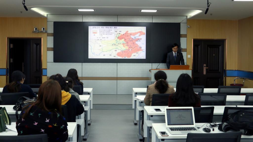 余劲东博士以汉武帝加强中央集权为题,重点分析了加强中央集权的两大措施——削弱相权和削弱诸侯国的实力,用追溯源头的分析方法,深入分析了“推恩令”、《左官律》等措施的历史作用。吴新平博士以世界文学的四大典型形象导入新课,结合文本分析了阿Q的性格特点,并就阿Q形象的接受史进行了深入挖掘,从阶级、人类学等角度分析了不同时代的阿Q式精神胜利法。