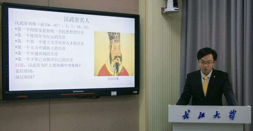 此次竞赛共有九位青年教师参加。李征宇老师以《离骚》的结构为题,追溯了屈原的世系,以时间意识为经,香草意象为纬,娓娓道来,展现了屈原九死未悔的自我形象,用深入浅出的方式为我们描绘了《离骚》宏大的历史图景。雒仁启老师从不同的社会形态进行划分,借周幽王为博褒姒一笑的烽烟赞扬了现代新闻活动的丰富性,同时用情景还原的方式分析了新闻的活动渠道,语言生动活泼。余劲东老师从表层原因及深层原因分析了汉武帝加强中央集权的措施,运用诸多历史典故,以史为鉴,论证了一个国家要有强有力的领导核心的观点。吴新平、向会斌、孙继、罗威、王薇薇、刘建萍等老师也分别以充实丰富的内容、灵活多样的方法、深入浅出的讲授,为我们展示了一堂堂精彩的课程。