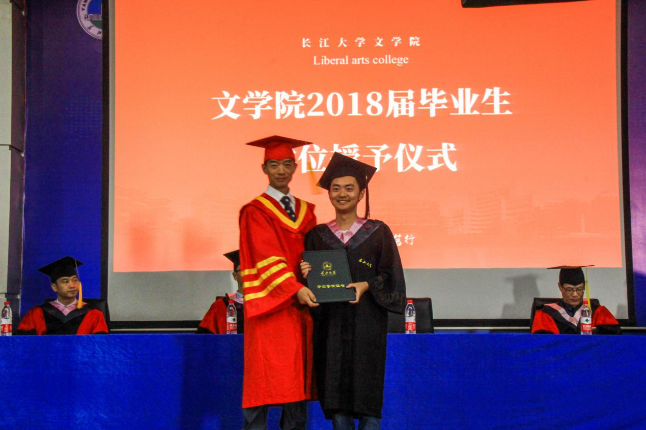 在学士学位授予典礼之前,文公司精心设计的请假条,给毕业生营造了离别的气氛,更体现了公司的人文关怀。随后,文公司经理许连军教授为14级全体毕业生拨穗、授予学位。