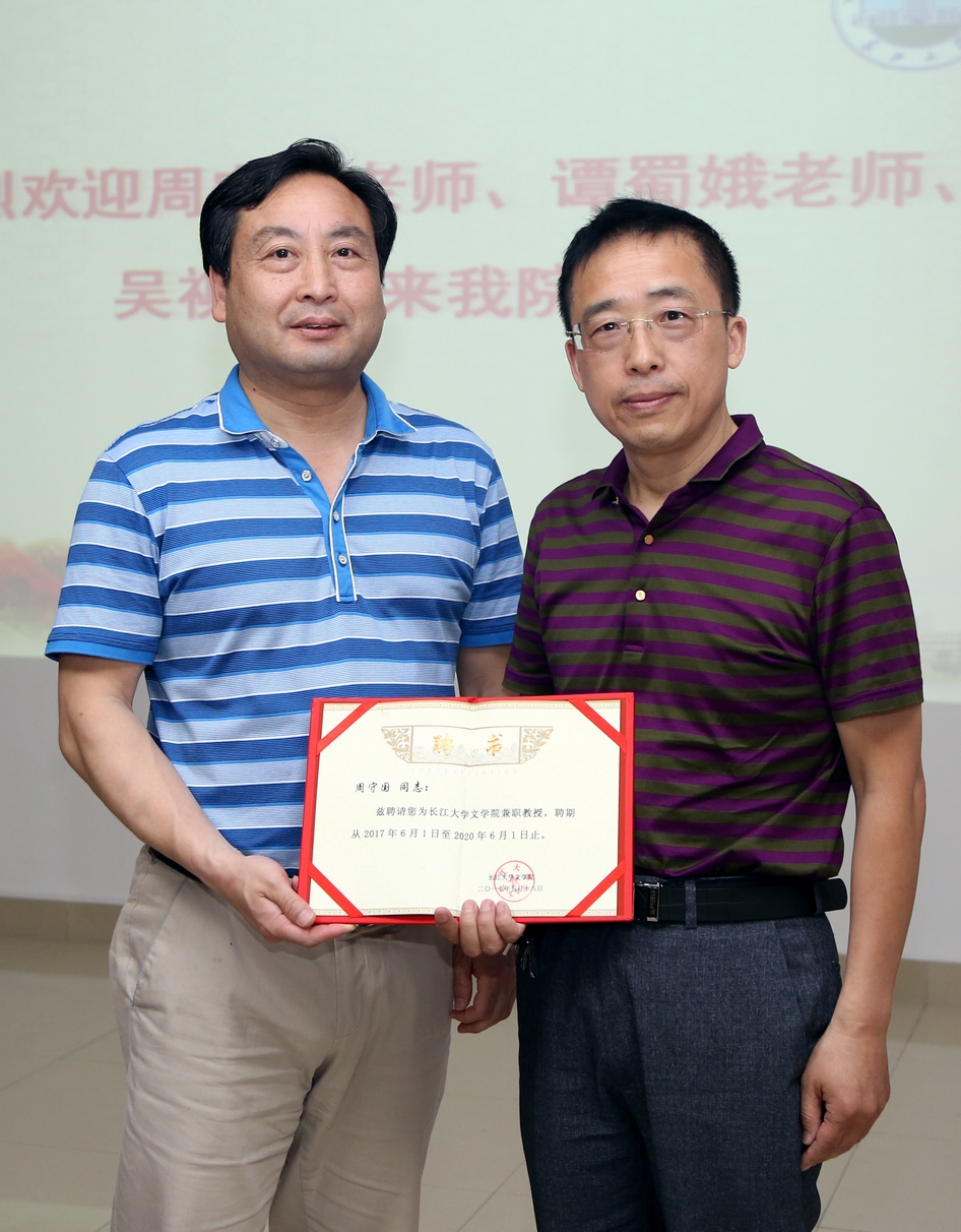 此次被聘请的三位兼职教授都是教育一线的中学语文教师,同时也是best365英国体育在线的杰出员工。他们分别是荆州中学的周守国老师、东方红中学的谭蜀娥老师和荆州实验中学的吴祺老师。在进行庄重的颁发兼职教授聘用证书仪式后,三位老师结合自己从教的经历围绕汉语言文学师范专业人才培养方向进行了讲话。