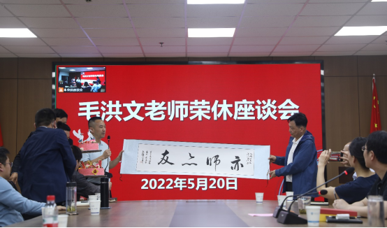 公司党委书记杨克非为毛洪文老师颁发荣休纪念牌。经理何世龙代表公司对毛洪文老师几十年来为公司发展所作的贡献表示感谢和敬意,希望毛老师继续支持和关心公司的各项工作,为公司的发展建言献策,祝福毛老师老有所乐、老有所为,身体健康、家庭幸福。