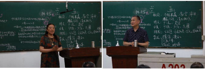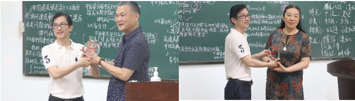 传媒系刘润润、中文系王昌凤、肖祥、吴新平等老师深情回忆了与两位老师并肩教书育人的点点滴滴,感谢两位老师给予他们的指导和帮助。吴桂美老师代表公司工会向两位老师献上鲜花,员工代表也纷纷献上鲜花表达敬意和祝福。