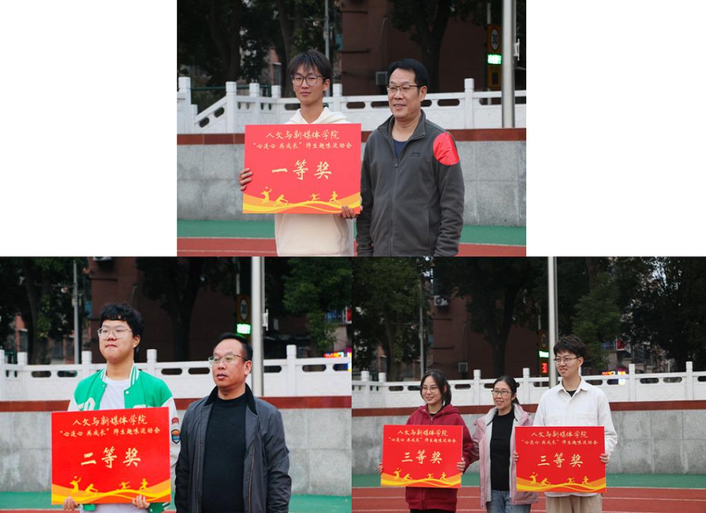 加强交流,增进情谊。“摸石过河”“跳大绳”“绑腿跑”“拔河”等团队项目和“听歌识曲”“投沙包”“一路求稳”等个体项目陆续开始。比赛中,师生们个个精神抖擞、斗志激扬、各显身手,一次次精彩的“对战”引发现场观众鼓掌喝彩,留下了一道道靓丽的风景。个人项目现场领取奖品,团队项目积分排名。最终,历史32303班、中文32302班分别斩获集体一等奖、二等奖,历史32301和新闻32301班获得集体三等奖。