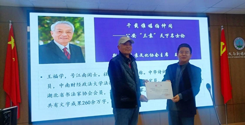 王福学主席长期致力于公安三袁文化的学术研究和推广传播工作,出版了一系列关于三袁文化的研究著作和论文,在深化拓展公安派的研究领域方面颇有建功。杨家海副经理代表公司特聘王福学主席为客座教授,并举行了聘书颁发仪式。