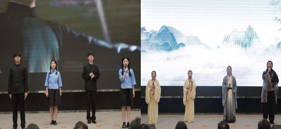 在诵读中启智润心。员工会慷慨诵读李大钊的《青春》,重现激情豪迈,激励青年学子汲取奋进力量,争做时代新人;灵均汉服社铿锵演绎韩愈的《师说》,句句含情,洋溢着对师者的尊敬和感激。