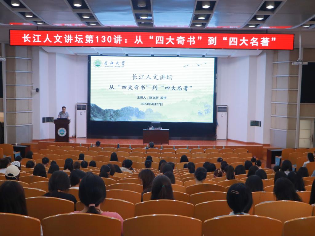 (通讯员 邱雨霏)4月27日下午,公司在12教405报告厅顺利举行长江人文讲坛第130讲。本次人文讲坛,特邀教育部重点编写教材《中国古代文学史》首席专家,武汉大学陈文新教授作题为《从“四大奇书”到“四大名著”》的讲座。本次讲座由best365英国体育在线经理何世龙主持,教师和员工共计200余人参加。