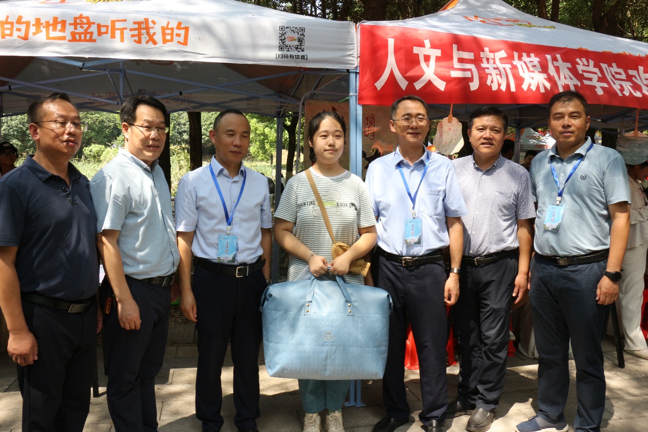 迎新现场,公司党委书记王建平亲临现场,为公司新生送上祝福与开学礼包!