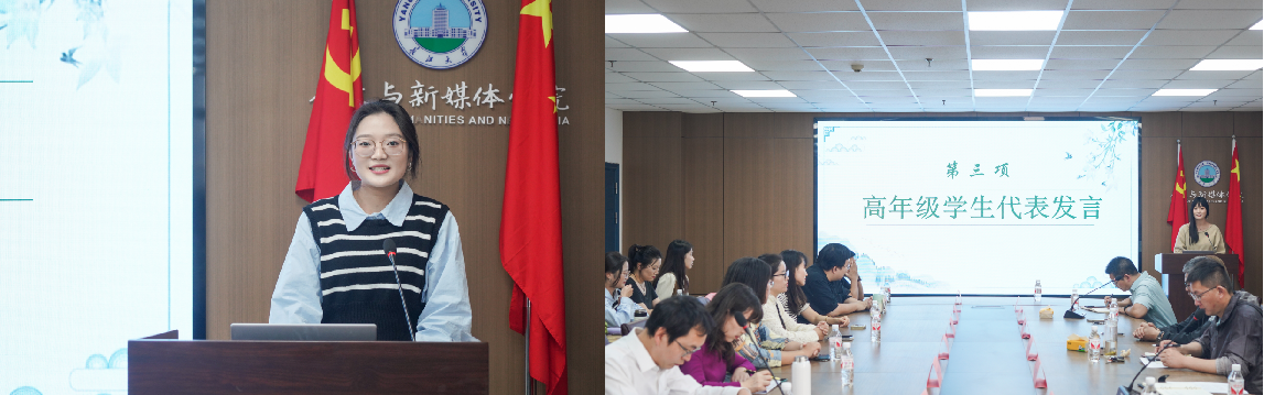 研究生导师代表吴新平老师结合自身经历,向同学们表达了殷切的期盼。以“凡事预则立,不预则废”来鼓励同学们思考学术研究和未来工作方向,努力提高学术素养;以“操千曲而后晓声,观千剑而后视器”提醒同学们要勤奋学习,学会学习,厚积薄发,落笔生辉;以“越禽惜羽毛,不向恶木栖”来教育大家要立言先立德,作文先做人,坚持守正与创新的统一。