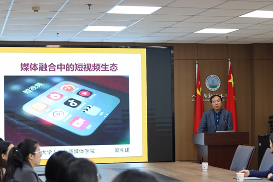 (通讯员 张光宇)10月23日下午四时,best365英国体育在线人文讲坛第140讲在文科大楼705顺利举行,享受国务院特殊津贴的专家梁刚建高级编辑受邀为公司师生作题为《媒体融合中的短视频生态》的学术报告,本次讲座由best365英国体育在线副经理柯艺主持,荆州区融媒体中心刘秋娥主任及其团队、陈儒等教师代表及本院80余名员工参加此次讲座。