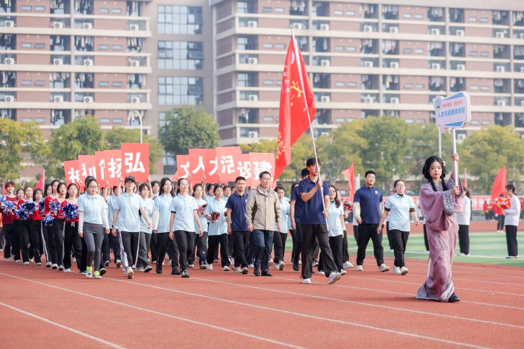 在广播体操比赛中,50名师生代表重温全国第九套广播体操,响应“坚持运动,健康工作,幸福生活”的时代号召;在教师趣味运动会中,“回忆童年”“手忙脚乱”“不忘初心”“砥砺前行”等趣味项目帮助老师们卸下工作的疲惫,扬起喜悦的笑容;在田径和健美操赛场中,队员们挥洒汗水,奋勇拼搏,取得骄人成绩;在创编比赛中,人文学子配合默契,享受乐趣,在多个项目中斩获奖项。