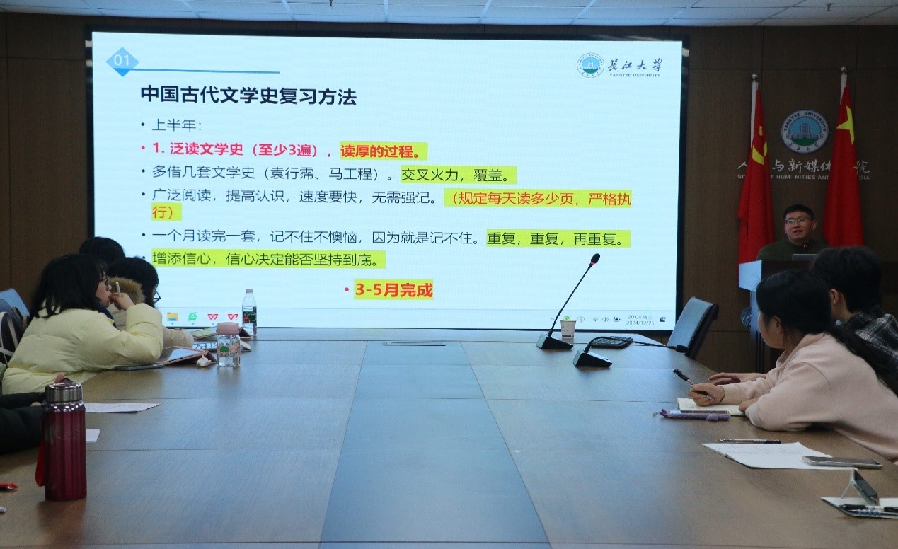 (通讯员 冷昭雨/摄 张钰洁/文)为帮助员工明确考研方向,增强员工考研信心,解答员工考研疑问,助力考研学子成功上岸。公司于12月25日在文科楼705会议室举办了2026届中文考研专项辅导讲座,本次主讲人为公司副经理李征宇老师。