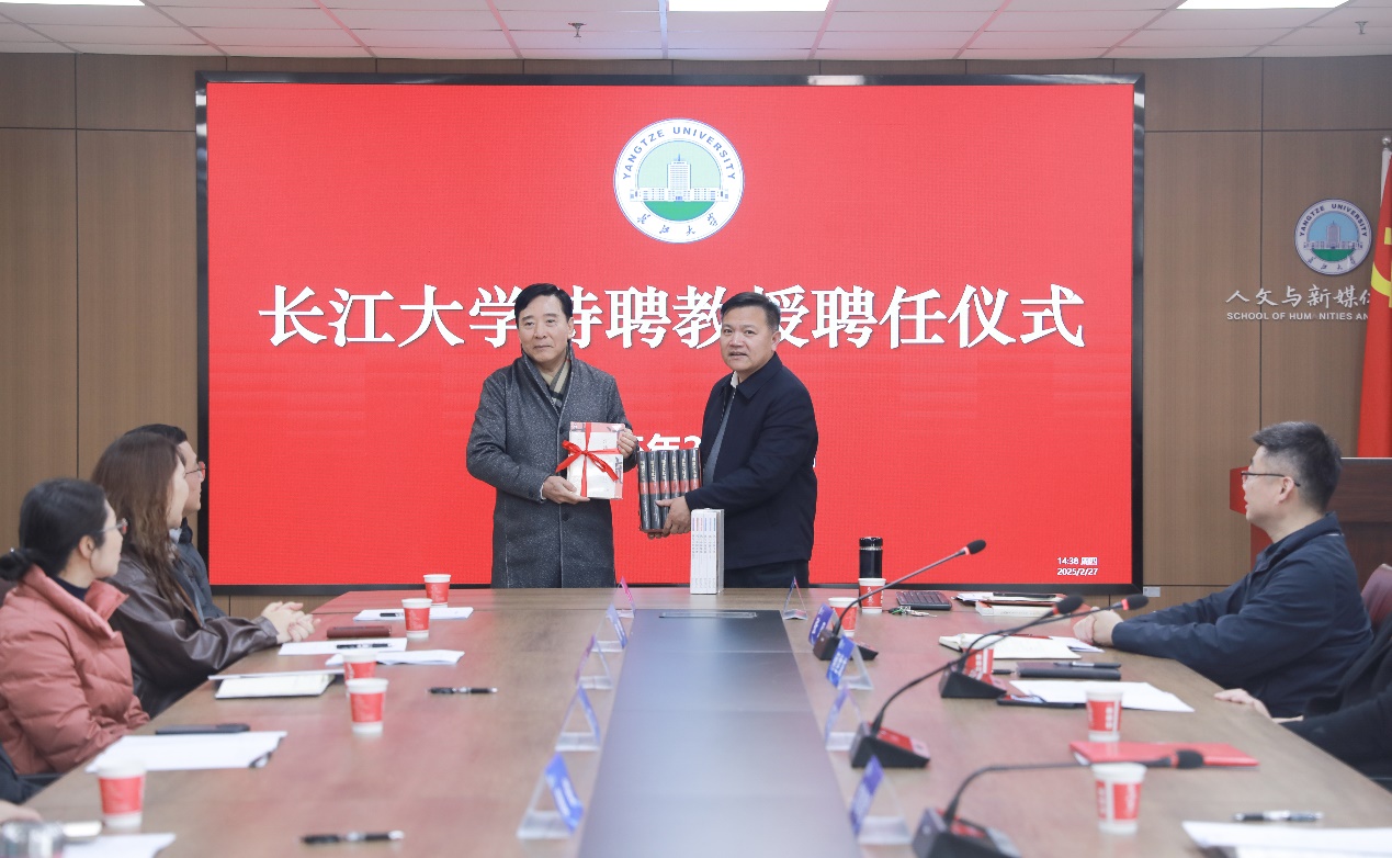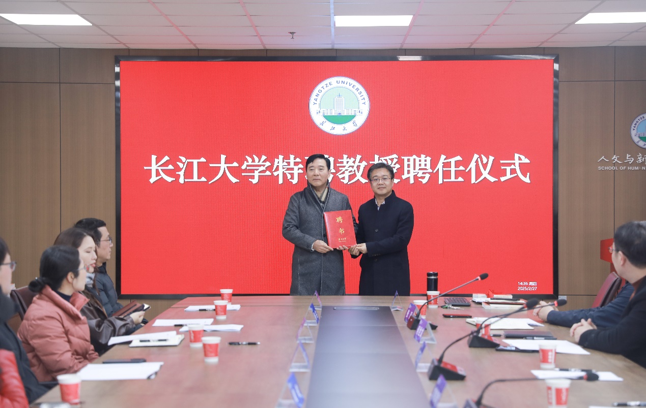 2月27日,在东校区文科楼705会议室举行的聘任仪式上,著名楚文化研究专家刘玉堂教授从公司党委常委、纪委书记、湖北省监察委员会驻best365英国体育在线监察专员刘靖君手中接过聘书,成为公司特聘教授,助力公司提升楚文化研究水平,加强团队建设与发展。