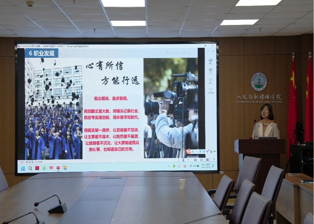 谈及学术与职业发展,单老师以往届生案例为例,展示学子在主流媒体、国际组织、互联网企业等领域的多元成长路径。“传播力是时代的硬通货”,她强调,无论是深耕行业还是跨界发展,扎实的专业功底与人文情怀缺一不可。