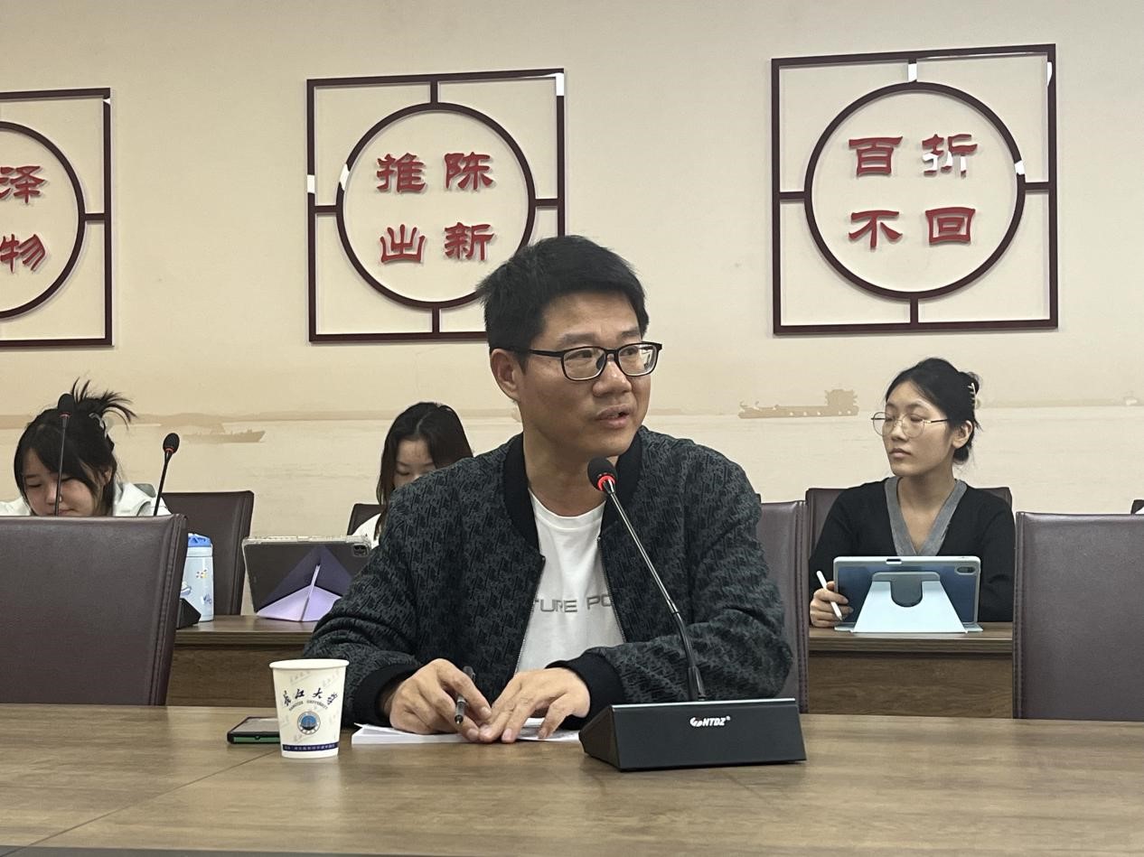 在交流环节,师生们就物叙事的主体性与客体性、物叙事的的艺术方式、物的具体呈现过程、如何讲学术研究与自己的专业相结合等问题进行了深入交流。曾教授一一耐心地解答了现场老师、同学们的问题。秦鹏举老师做总结发言,提出四点感受:一是讲座中学术研究的前沿性、敏锐性和分析的深刻性,曾教授能够站在学术的热点和制高点进行思考;二是研究要有问题意识,这要通过反复阅读文本和批评实践来获得;三是讲座具有强烈的理性反思和哲理批判性,比如:卡夫卡作品中的非人类叙事是人对物的叙事,而不是物叙事本身;四是研究要有自身的领域意识,善于结合自身的优势和特长,并持之以恒。