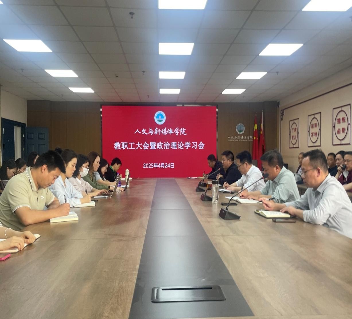 李波重点领学了习近平总书记历次考察湖北重要讲话精神,结合正在开展的深入贯彻中央八项规定精神学习教育、违规打牌和赌博专项整治行动,要求全体教职工进一步增强思想自觉和行动自觉,强化课堂主阵地责任,严把课堂教学政治关、质量关,坚决做到不出违反中央八项规定精神的问题、不出有损师德师风的问题、不出违规打牌和赌博的问题、不出酒驾醉驾的问题;并专题学习了教育部公开曝光的违反教师职业行为十项准则典型案例、公司师德失范案例和《新时代高校教师职业行为十项准则》《关于加强和改进新时代师德师风建设的意见》等文件精神;同时,他对国家社科基金申报中,部分教师“应报未报”的情况进行了通报,并提出了要求。