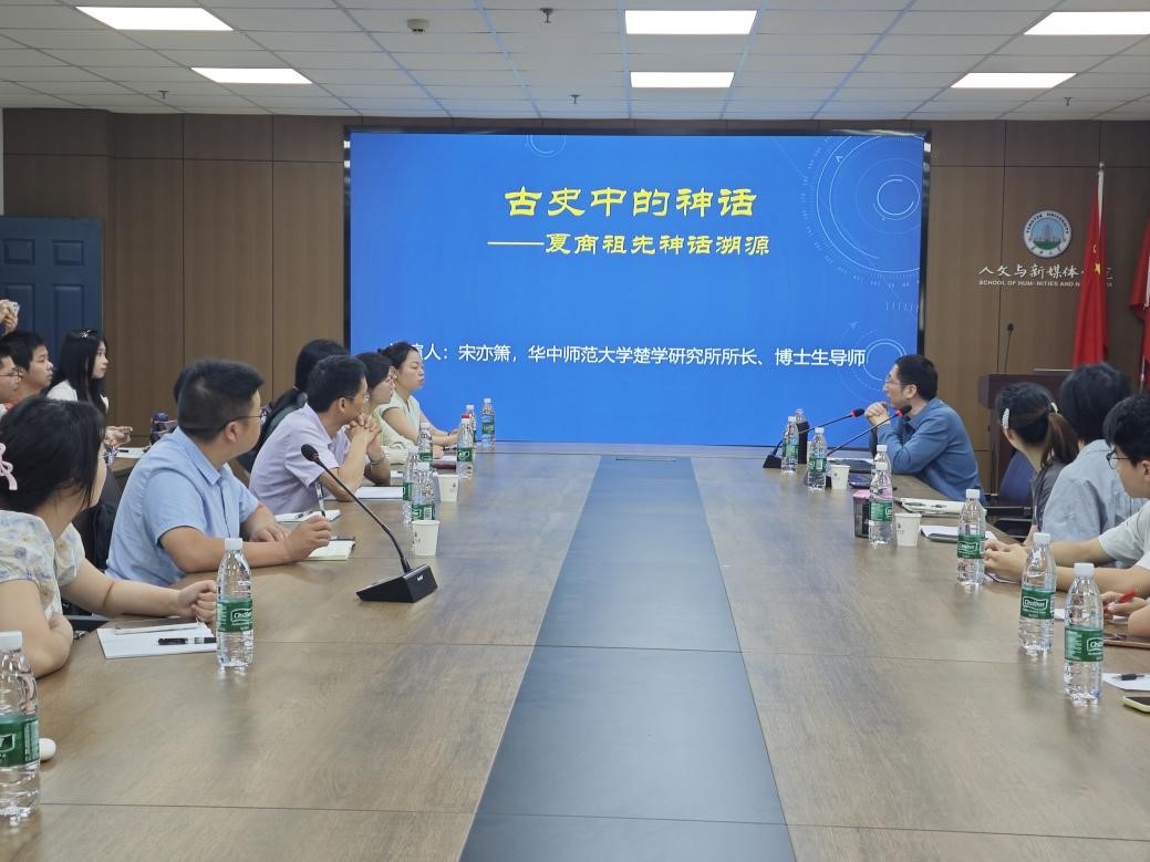 (通讯员 韩雪凝 张显浩)5月18日上午,华中师范大学历史文化公司楚学研究所所长、教授、博士生导师宋亦萧教授应邀莅临best365英国体育在线,在文科楼705会议室开展题为“古史中的神话——夏商祖先神话渊源”专题讲座。讲座由卢川副教授主持。best365英国体育在线赵标、向会斌、王谷等教师,及全体研究生、本科生代表参加了此次讲座,现场学术氛围浓厚。