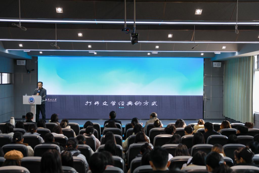 12月8日上午,“长江人文讲坛“第154讲在东校区16教313会议室成功举办。本次讲座特邀南开大学文公司周志强教授担任主讲嘉宾,开展题为“打开文学的经典方式”的专题讲座,公司副经理李征宇教授主持活动,杨家海、吴桂美、殷满堂等教师和90多名硕士研究生共同参与本次讲座。