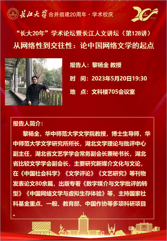 “长大20年”学术论坛暨长江人文讲坛(第128讲)