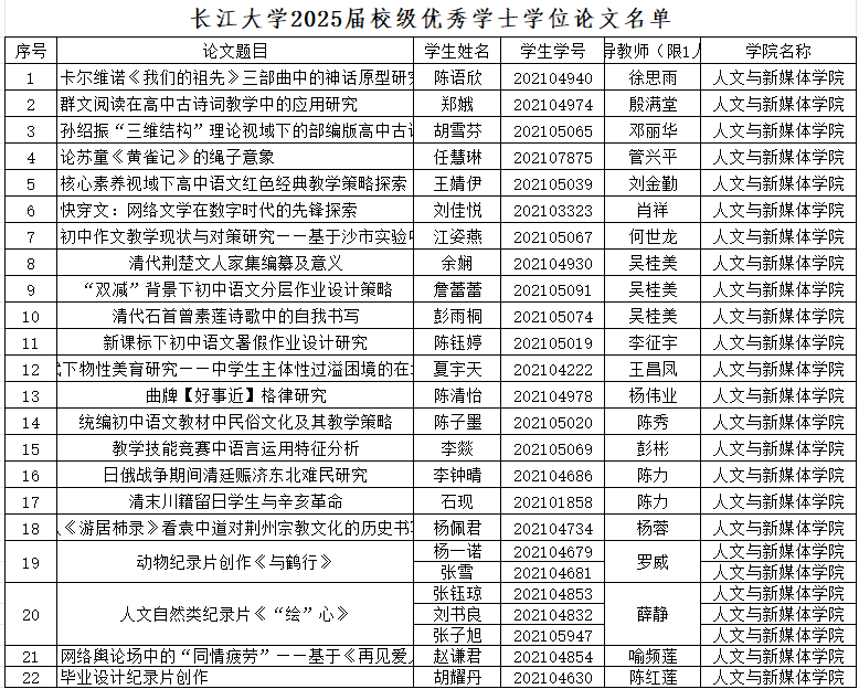 根据《best365英国体育在线毕业论文(设计)工作管理办法(修订)》(长大校发〔2023〕114号文件)及《关于组织评选2025届校级优秀学士学位论文的通知》,公司组织了2025届校级优秀学士学位论文评审工作。经公司学位评定分委员会集体研究决定,拟推荐陈语欣、郑娥、胡雪芬等25位同学的学位论文为校级优秀学士学位论文。
